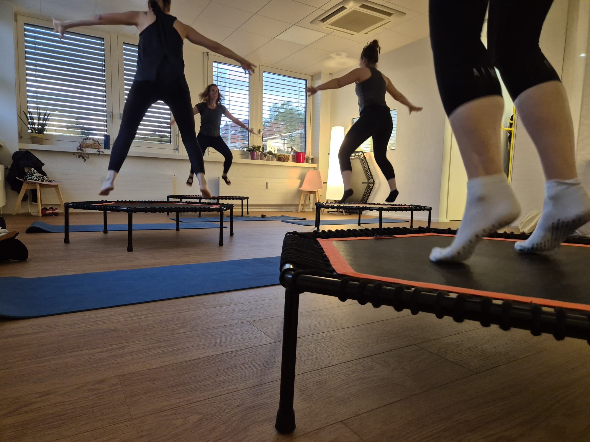 Cours cardio et renforcement musculaire sur trampoline. Tout cela en petit groupe dans une ambiance cosi et sympa ! Venez découvrir, transpirer et jumper avec nous…